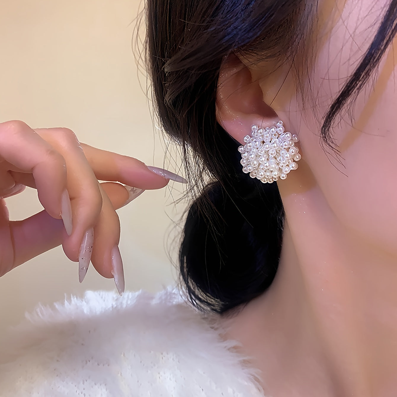 Fashionable Chic Faux Pearl Stud Earrings