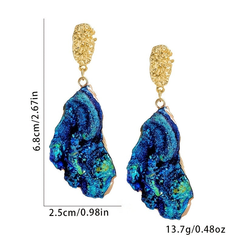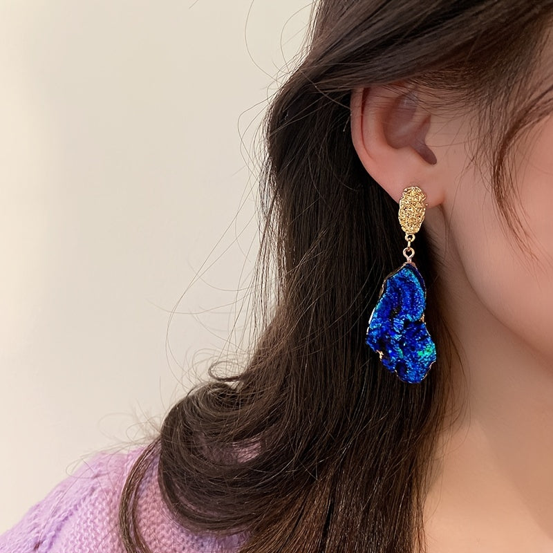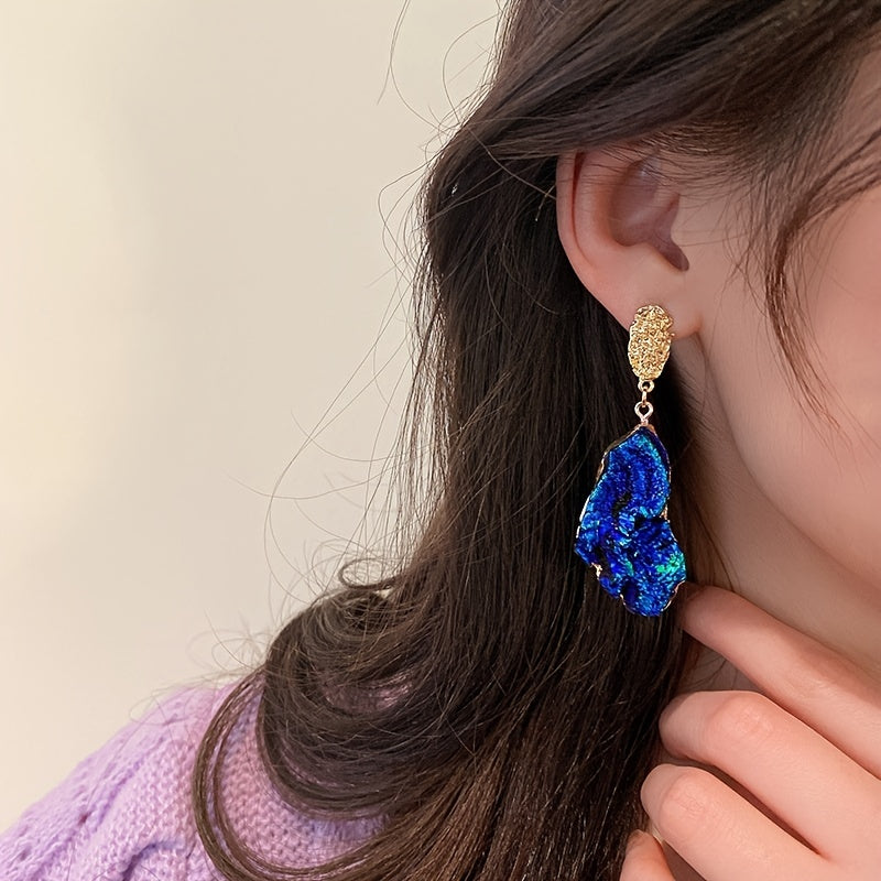 Irregular Blue Wrinkle Texture Drop Earrings