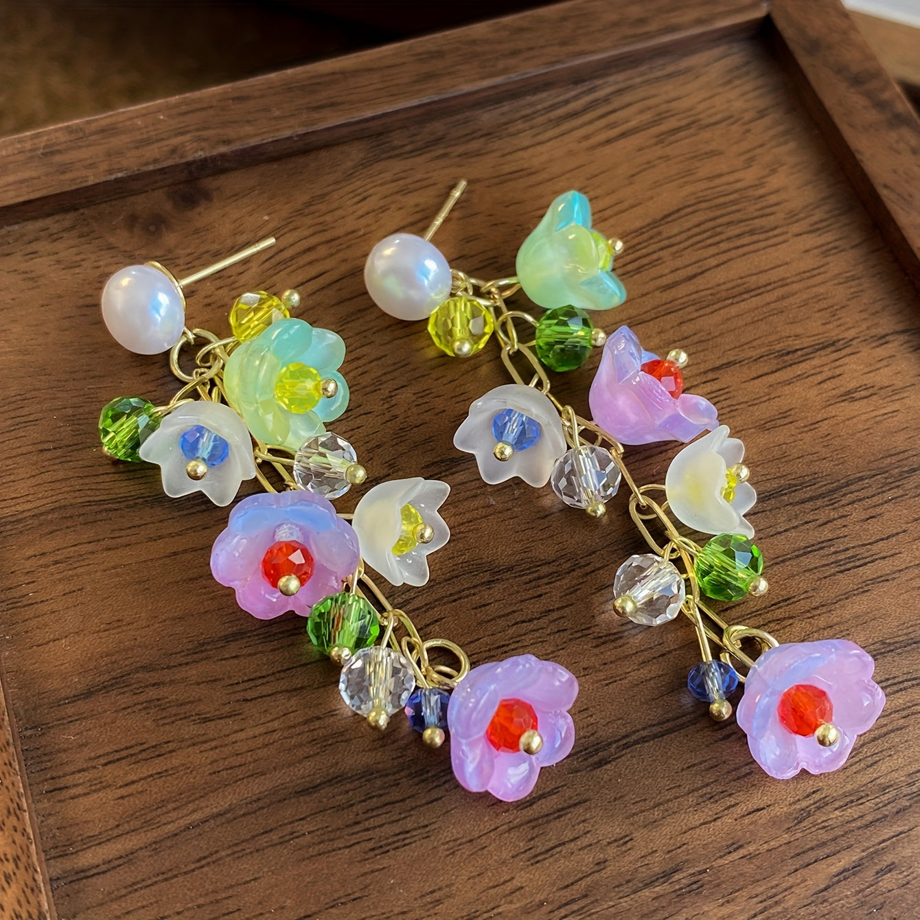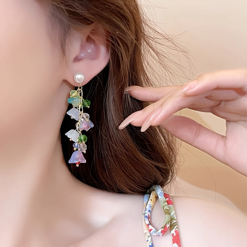 Pair of Elegant Floral Tassel Earrings