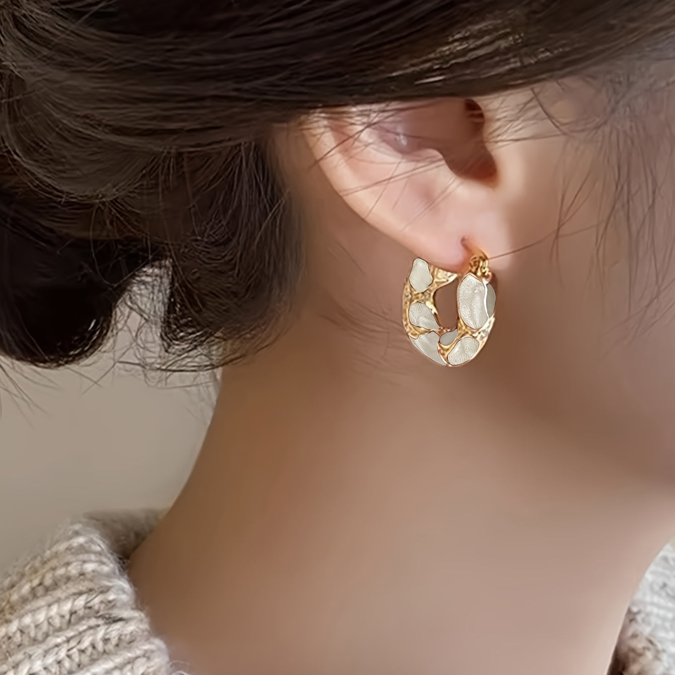 These hoop earrings are lightweight, shiny, and very comfortable to wear all day. They look elegant with both casual and dressy outfits. A wonderful everyday accessory!