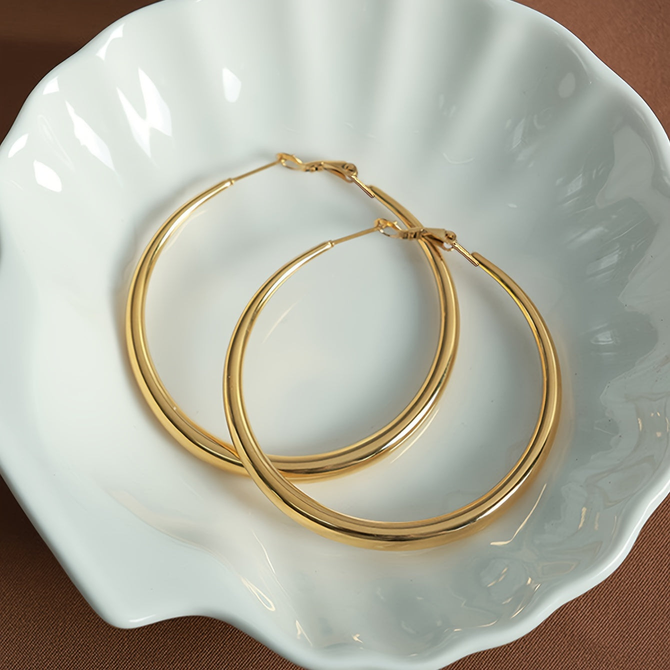 These hoop earrings are lightweight, shiny, and very comfortable to wear all day. They look elegant with both casual and dressy outfits. A wonderful everyday accessory!