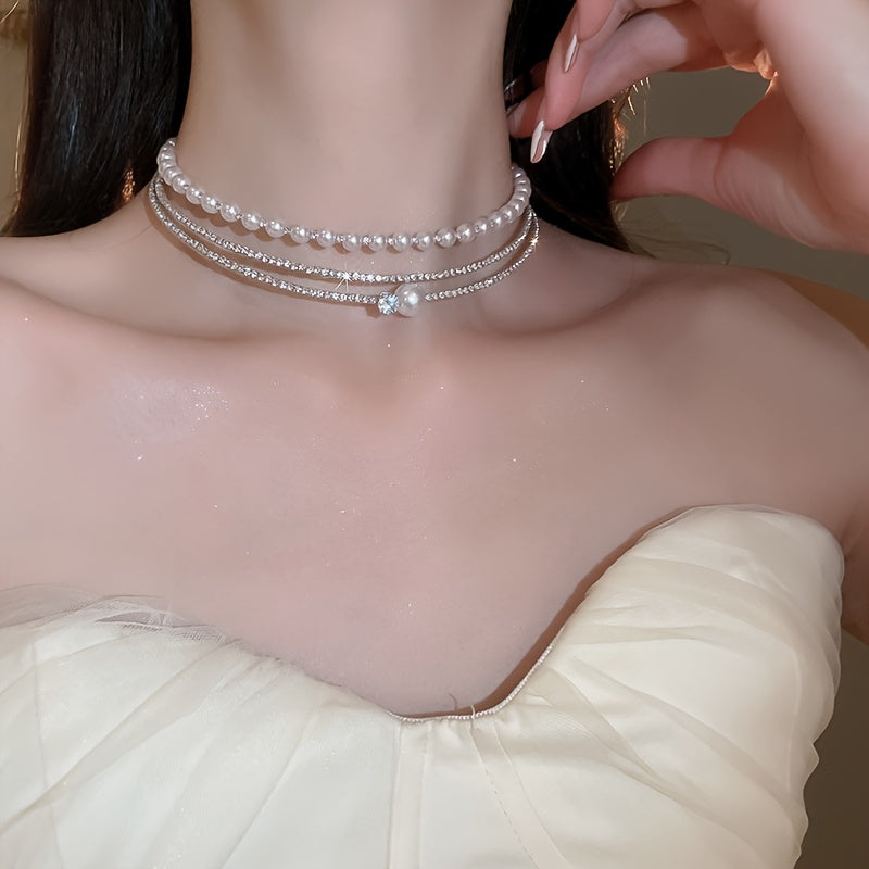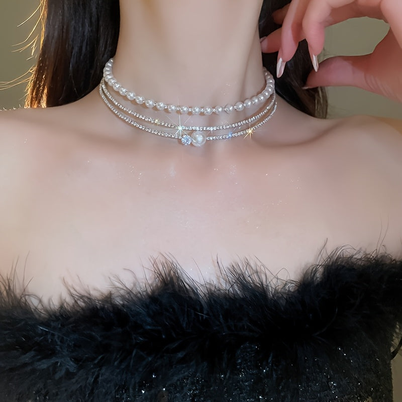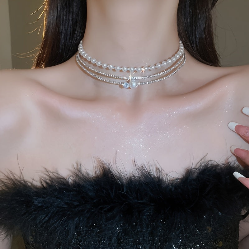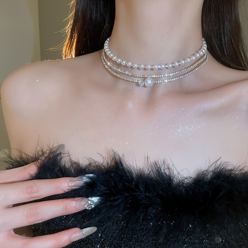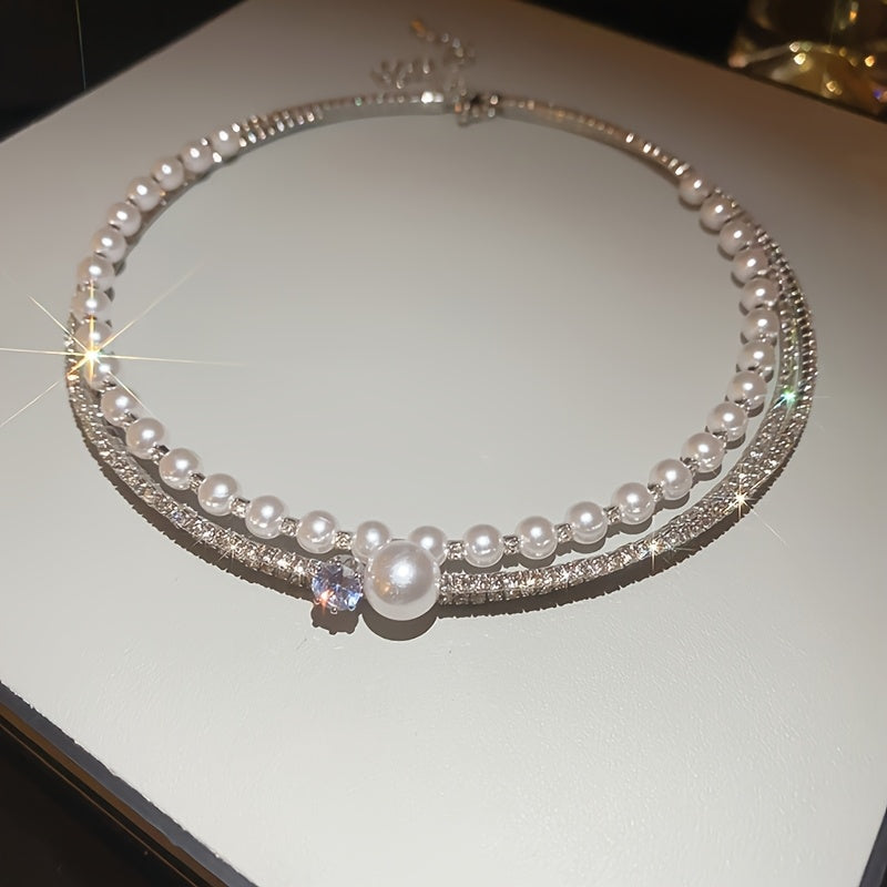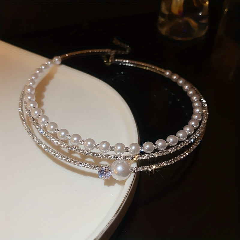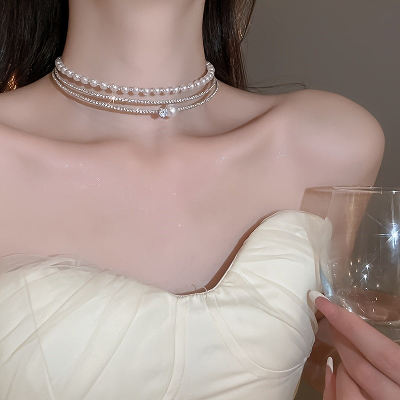 Multi-Layer Pearl Crystal Choker