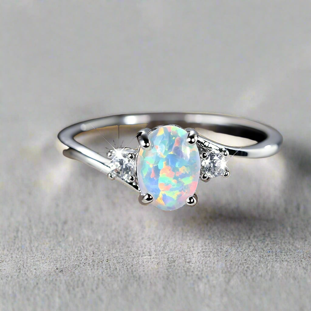 Oval White Opal Ring