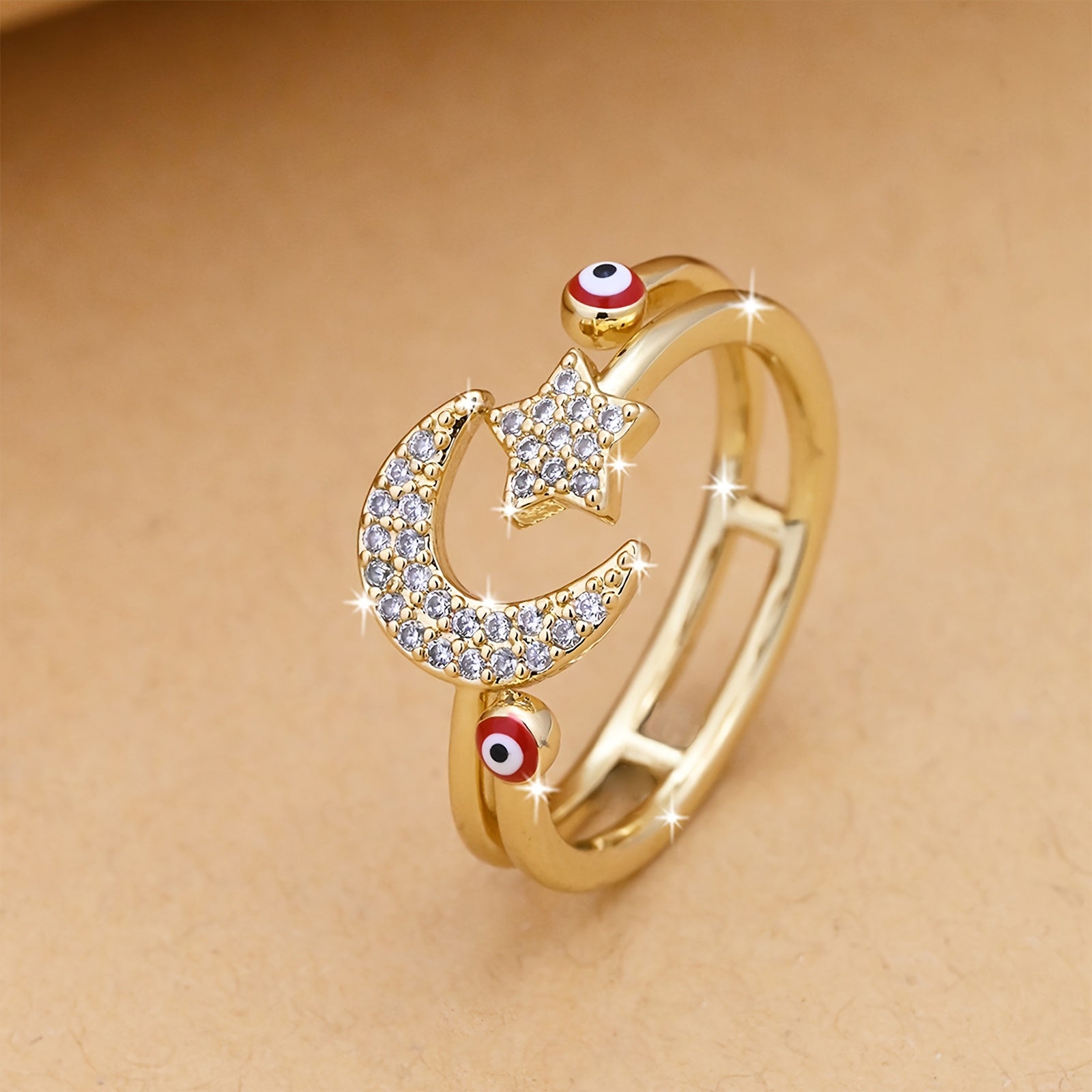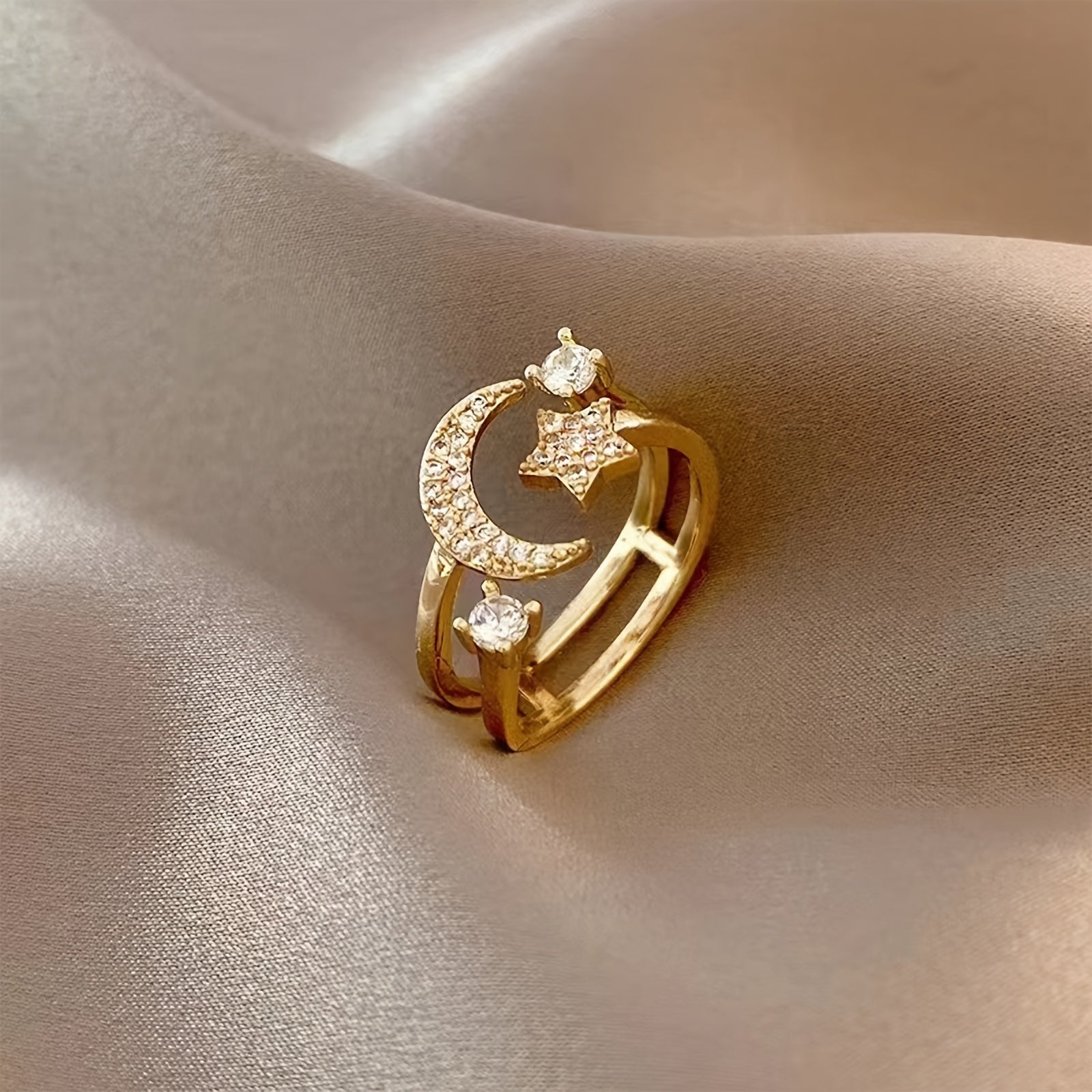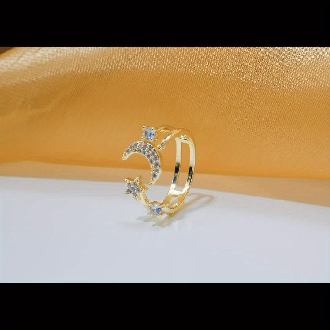 Adjustable Star & Crescent Open Ring