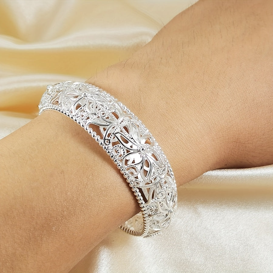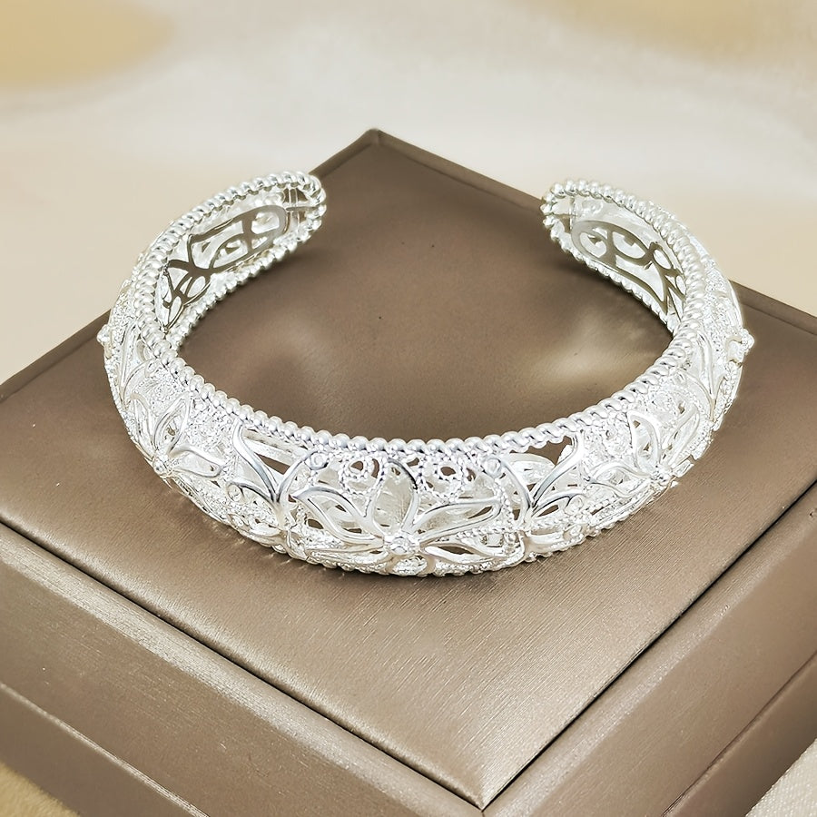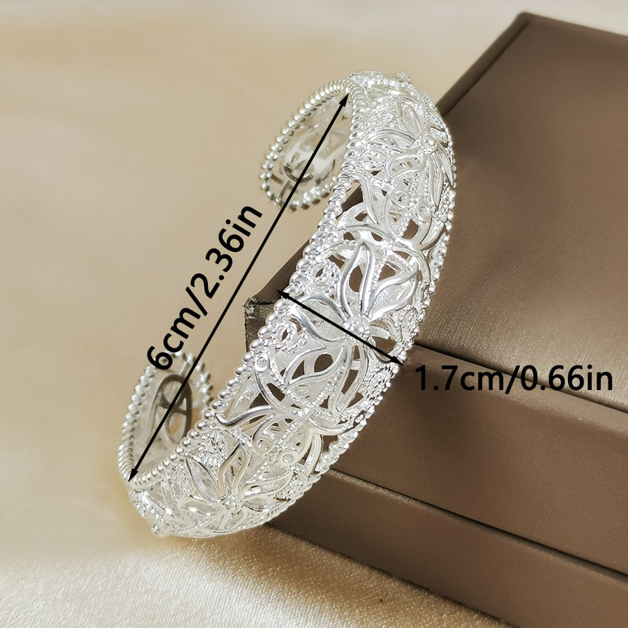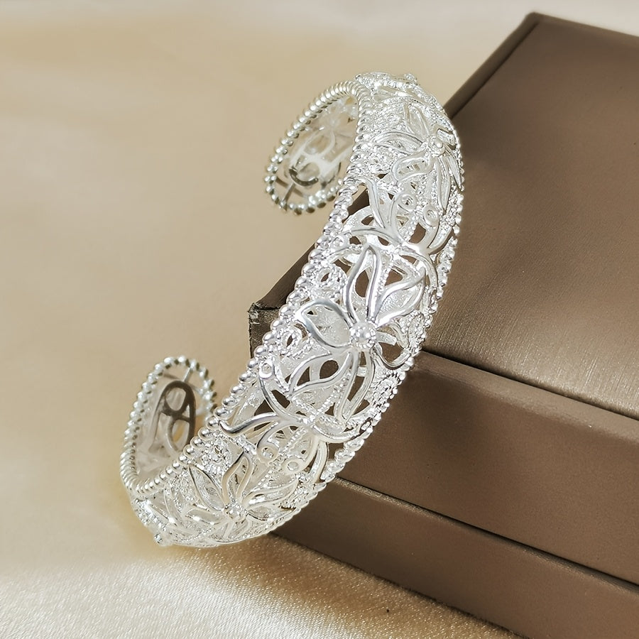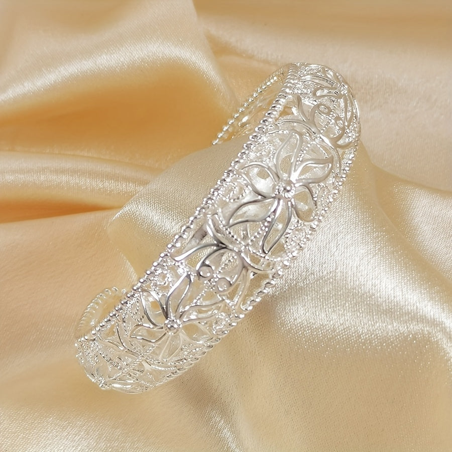 Intricate Silvery Floral Open Bracelet