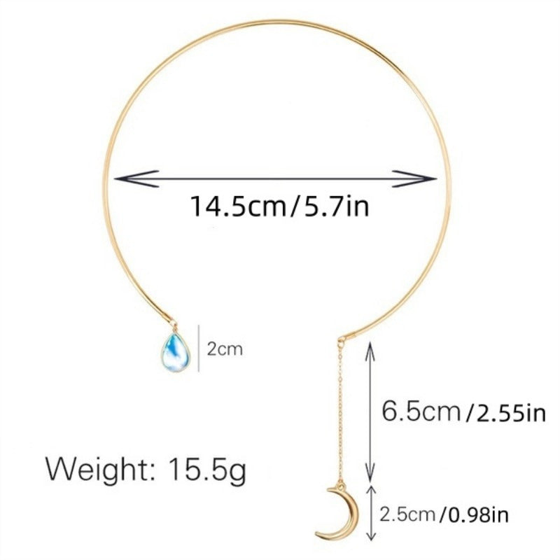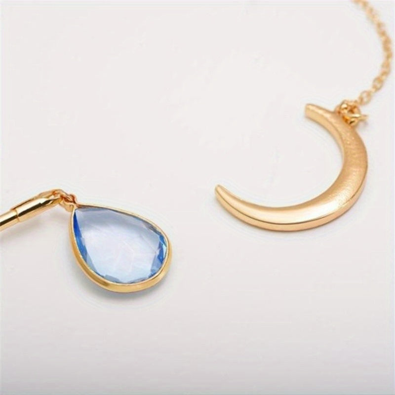 Water Droplet & Moon Pendant Necklace